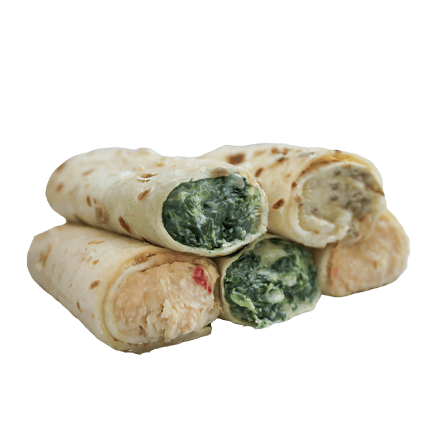 Crepes rellenos surtidos 6 unidades: 2 espinaca queso, 2 pollo pimentón y 2 champiñón queso.